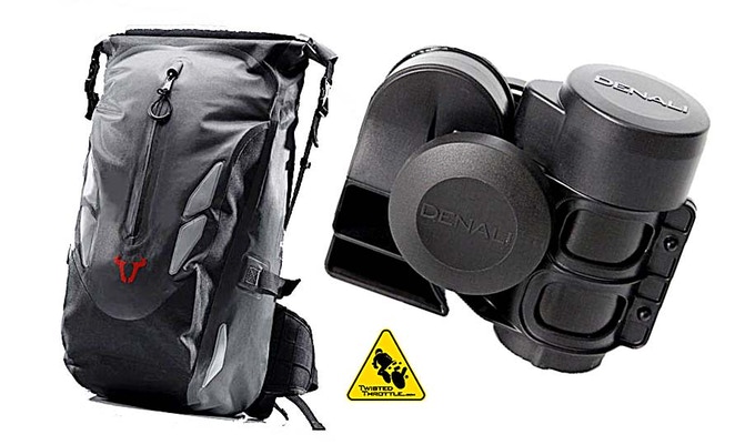 • SWMotech Baracuda Waterproof Backpack ($170) and DENALI SoundBomb ($50) from Twisted Throttle ($200)